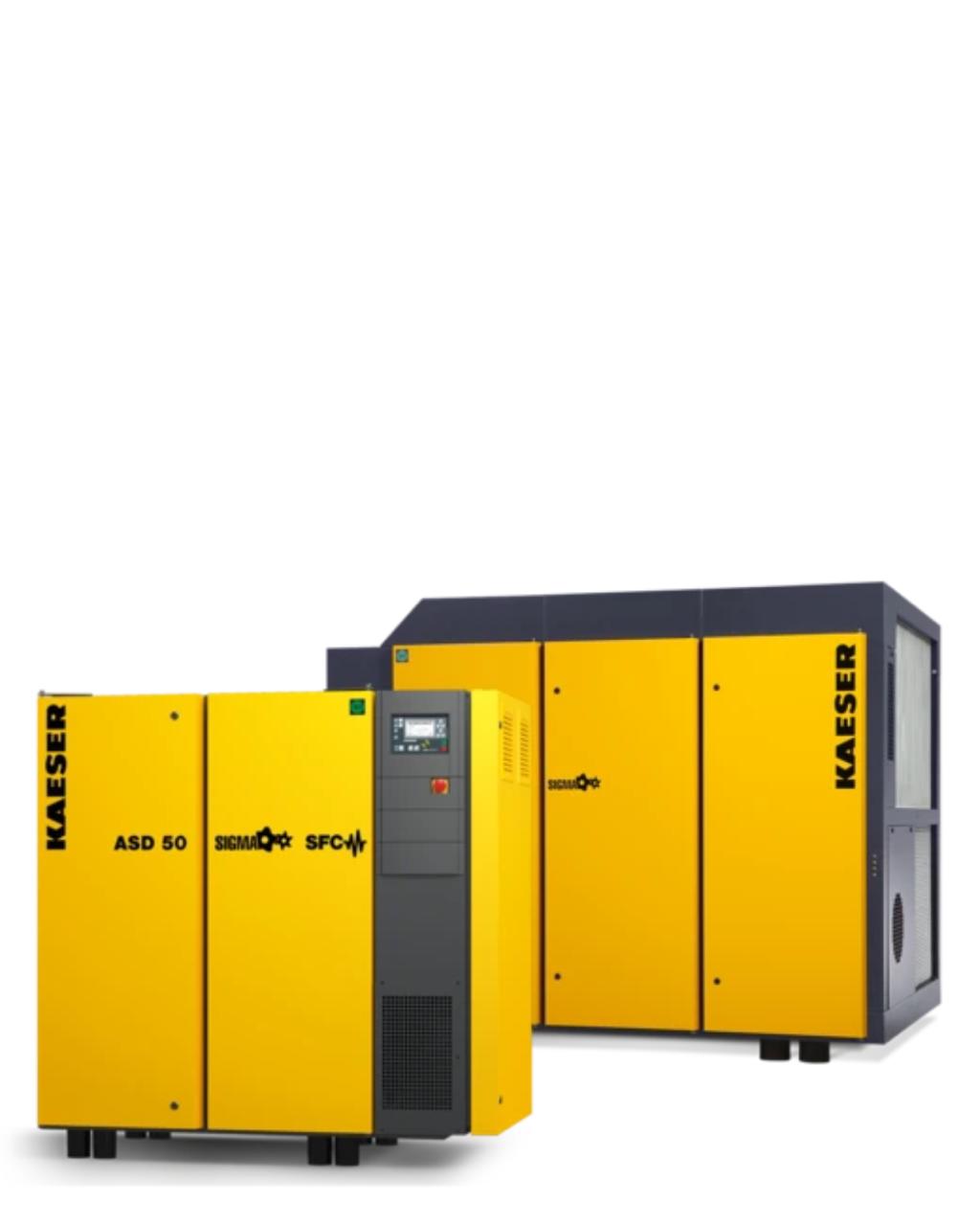 Compresores de tornillos rotativos con accionamiento por bandas KAESER son convincentes por su eficiencia y confiabilidad. Series: SX, SM, SK, AS, Disponibles con secador refrigerativo opcional, control de velocidad variable y/o tanque de almacenamiento de aire Control intuitivo con SIGMA CONTROL 2